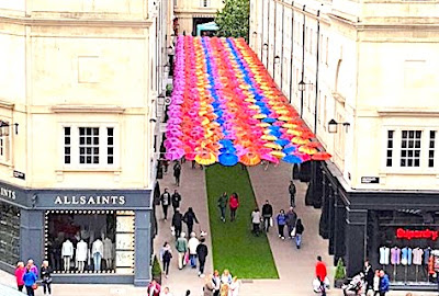 En Espagne, au Portugal, on se sert ainsi des parapluies au-dessus des rues pour protéger les passants du soleil.