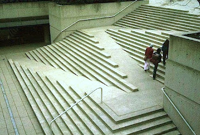 J'ai déjà parlé de cet escalier (ici) qui concilie avec beauté les exigences de la loi sur l'accès aux bâtiments publics par les handicapés (en chaise roulante par exemple) et les nécessités habituelles des escaliers.