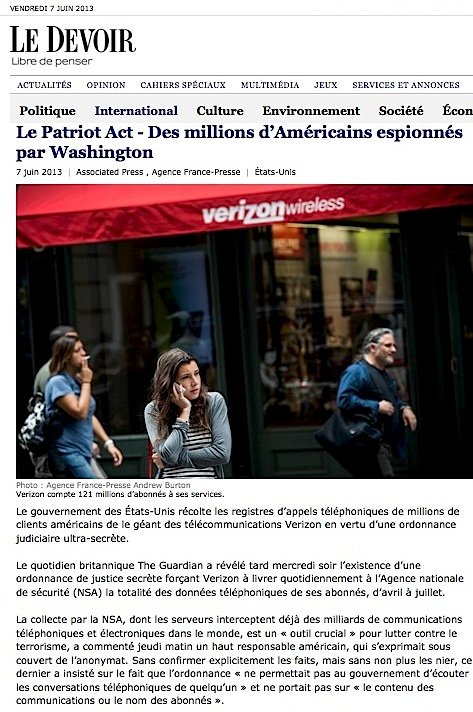 Notez le nom de la loi en vertu de laquelle ces millions d'Étasuniens sont espionnés par leur propre gouvernement : « Patriot Act ».