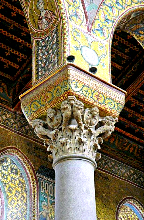 Non, ce chapiteau qui réunit harmonieusement l'art de Rome, l'art de Byzance et l'art roman, et, peut-être, quelque influence arabe, se trouve dans la cathédrale de Monreale en Sicile, près de Palerme.