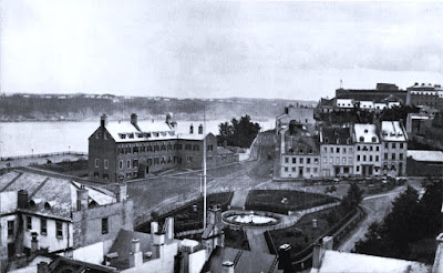 Vue du Vieux-Québec en 1872, quelques années après le départ des troupes d'occupation britanniques, remplacées par les troupes d'occupation canadiennes, occupation qui dure toujours !