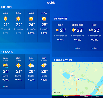 Température du jour à Arvida (13 août 2021)